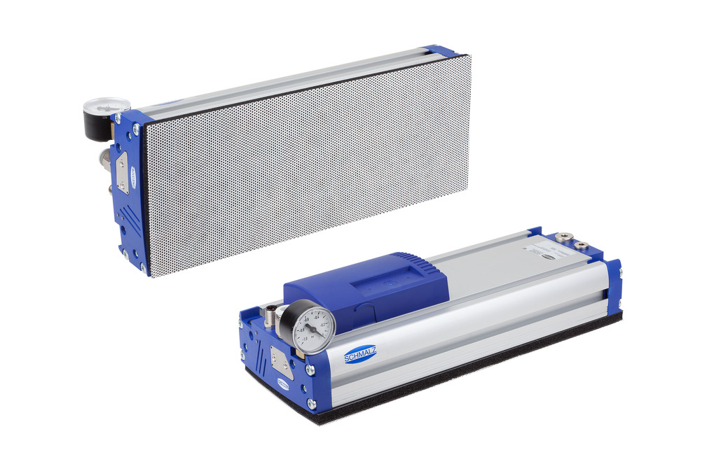 Vacuum area gripping system with sealing foam SU for handling glass surfaces with very sensitive coating types. The special fabric on the suction area of the gripper prevents scratches and contamination of the workpiece surface.