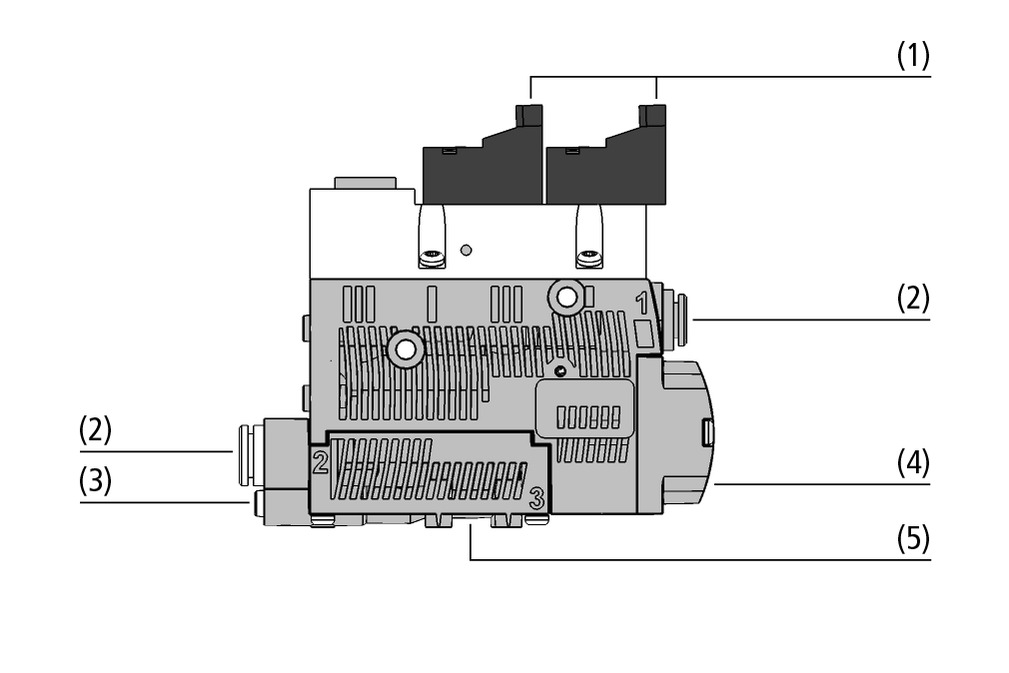 - 集成气动阀(1),常开或常闭功能